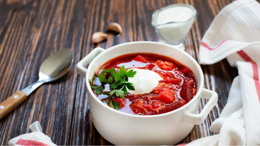 缶詰ひとつで本格ロシア料理が完成。パンを浸して食べれば、まるでビストロの味わいに。